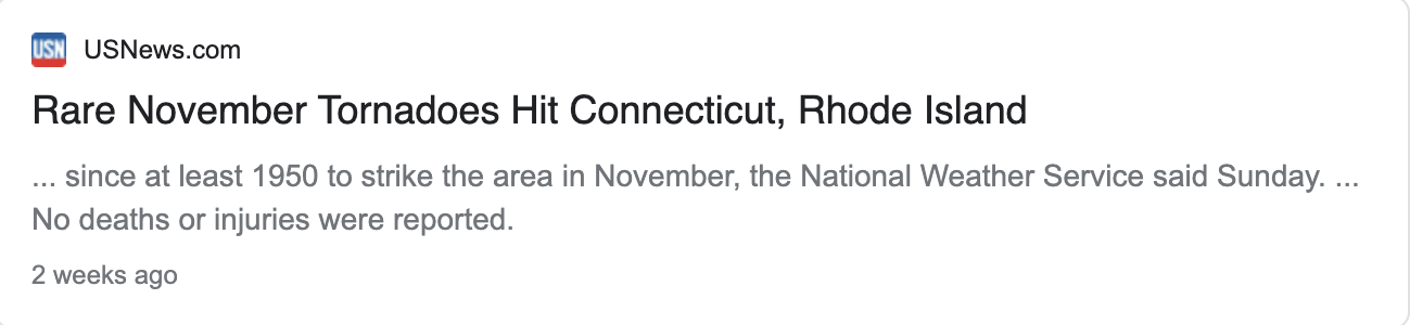 “Massive storm surges through city leaving five dead, over twenty in critical care.”